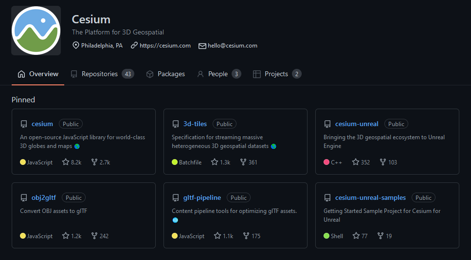 Cesium ion SDK在您的自定义 CesiumJS 应用程序中创建高级分析功能; - Cesium for Unreal(开源)是游戏引擎中第一个高精度 (WGS84) 地球仪,将 Cesium 的真实世界细节和准确性带到模拟环境中。