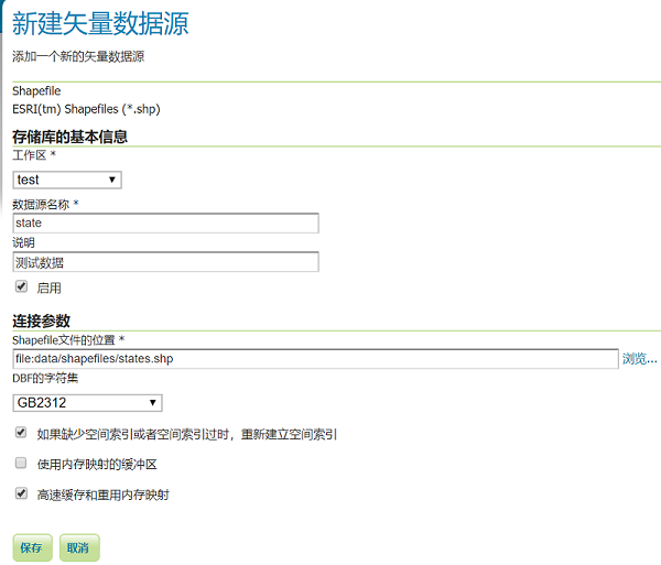 数据存储/添加新的数据存储/Shapefile;