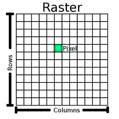 栅格数据就是将空间分割成有规律的网格(像素矩阵),每一个网格称为一个单元,并在各单元上赋予相应的属性值来表示实体的一种数据形式:
