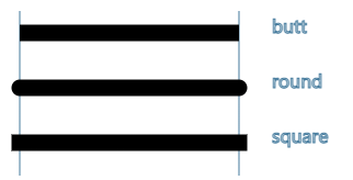butt的端点出没有处理,是平直的效果;round的端点加上了一个以线宽一半为半径的半圆;square的端点是加上一半线宽的方块。